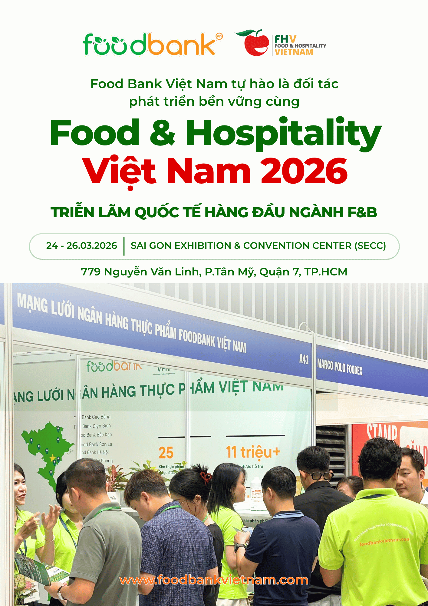 Mạng lưới Ngân hàng Thực phẩm Việt Nam (Foodbank Vietnam) tự hào tiếp tục đồng hành cùng Triển lãm Food & Hospitality Vietnam 2026 – một trong những sự kiện hàng đầu trong lĩnh vực thực phẩm, nhà hàng và khách sạn.